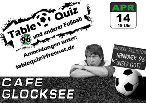 Das Fußball-Tablequiz mit Peter & Salima ist garantiert amüsant und fordert den geballten Fußball-Sachverstand heraus. Und der sollte das Geschehen rund um unseren Lieblingsverein Hannover 96, WM-Historie, allgemeine Regelkunde, Bundesliga-Rekorde, jegliche Statistik, internationalen Fußball, Kurioses abseits des Platzes und vieles mehr umfassen. Aber keine Sorge, auch die unwissenden Laien können dank Multiple Choice oder „um die Ecke denken“ Punkte machen. Kleiner Vorgeschmack gefällig? Das torreichste Spiel der WM-Geschichte ging 7-5 aus, welche beiden Kontrahenten standen sich dabei in welchem Jahr gegenüber? … Ihr macht das schon.